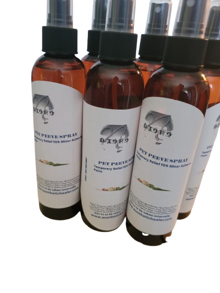 PetPeeve herbal pain spray is designed for quick relief from minor aches and discomfort. It features a blend of natural ingredients such as Cayenne pepper, Comfrey, Lavender, Thyme, Stinging nettle, Plantain, Pine, Red clover, Rose geranium, Basil, Eucalyptus, Peppermint, Rosemary, wintergreen, ylang ylang,chamomile, Epsom salt, and Menthol salicylate—each recognized for their soothing and analgesic properties.